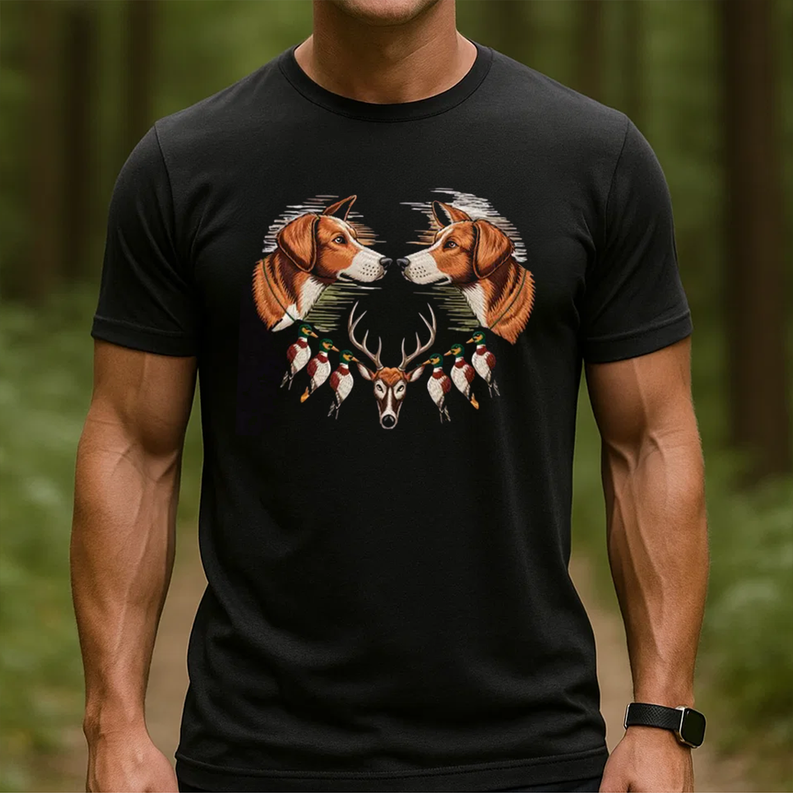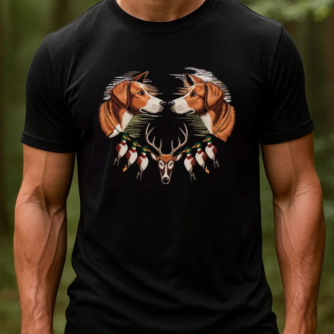 Duck and Deer Hunting Tee, Embroidered Dog Shirt, Gift For Hunting Lovers